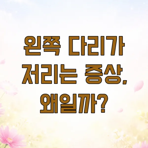 왼쪽 다리가 묵직하거나 찌릿찌릿한 느낌, 혹시 경험하신 적 있으신가요? 특별한 이유 없이 찾아오는 다리 저림 증상은 일상생활에 불편함을 줄 수 있는데요, 오늘은 이 증상의 다양한 원인과 해결 방법에 대해 속 시원하게 알아보는 시간을 가져보려고 해요.